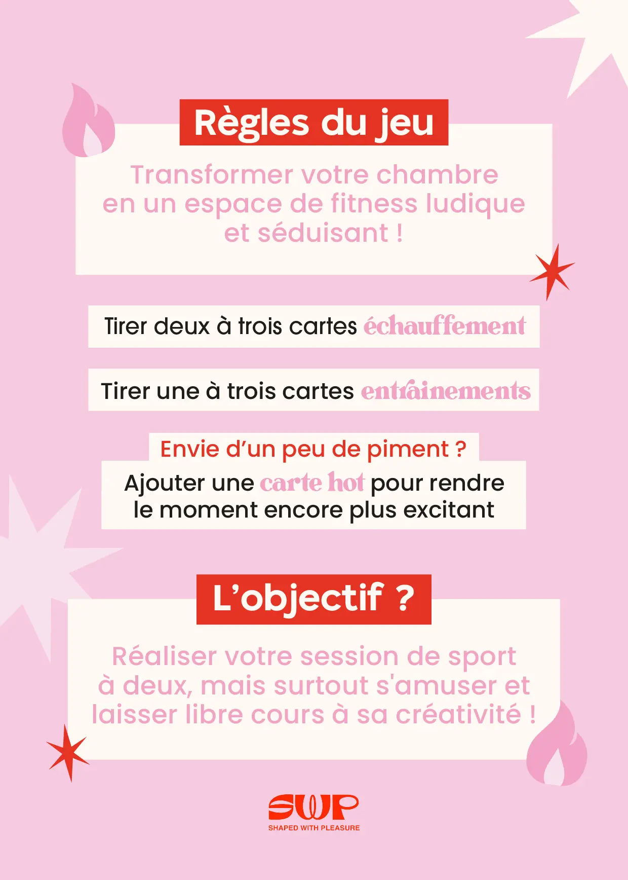 Created by a sex therapist, the aim of this game is to create a bond with your partner, and each card is designed to combine sport and sex without ever losing the fun.